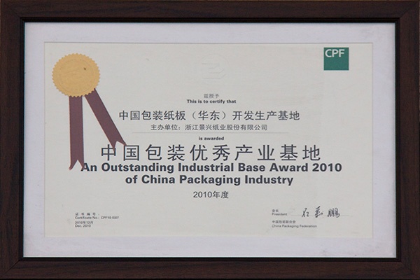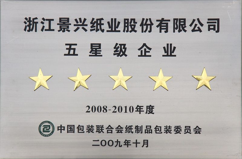 2010. | 06. | 景兴纸业被中国造纸协会、中国财贸轻纺烟草工会授予“全国造纸行业劳动关系和谐企业”称号。 |